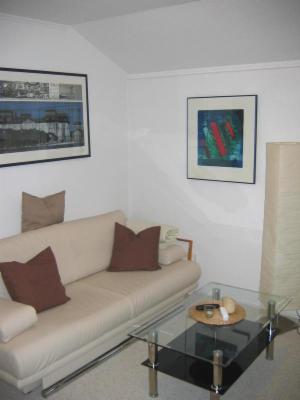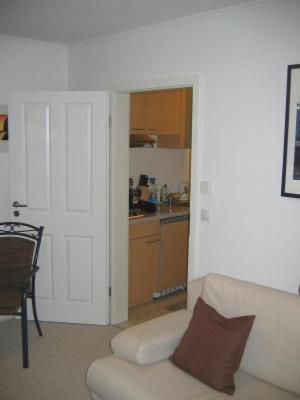 Die Wohnung ist spiegelbildlich zur Wohnung 1 und identisch ausgestattet. Das Wohnzimmer weicht in der Farbwahl ab.
